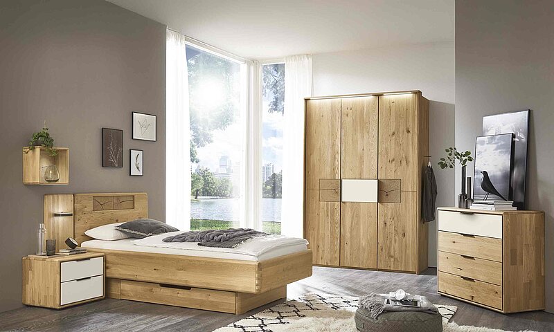 Massivholz-Schlafzimmer mit Hirnholz-Akzent