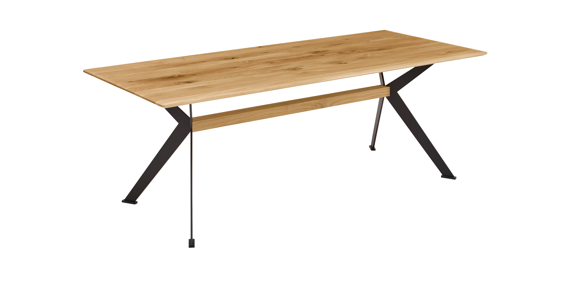 Massivholztisch TS 741 | Massivholztisch mit schweizer Kante und carbonfarbiger Metallwange mit integrierter Massivholz-Kantel, erhältlich in: