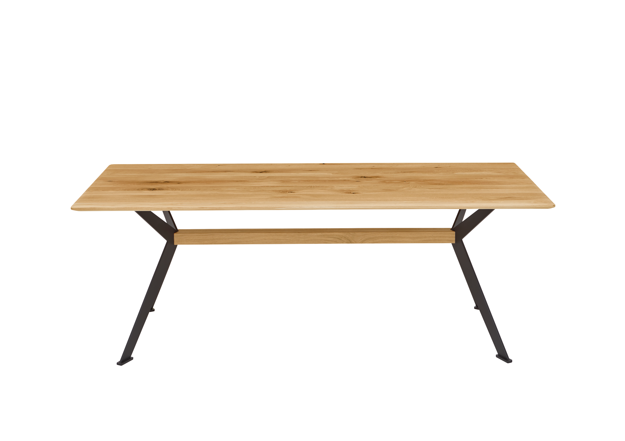 Massivholztisch TS 465 | Massivholztisch, Wildeiche soft gebürstet, mit carbonfarbig pulverbeschichtetem Metallgestell; Tischfüße mit Massivholzeinsatz, erhältlich in: