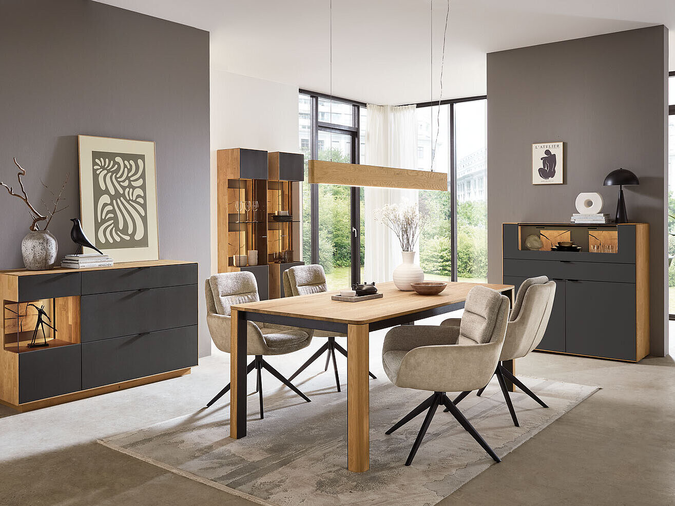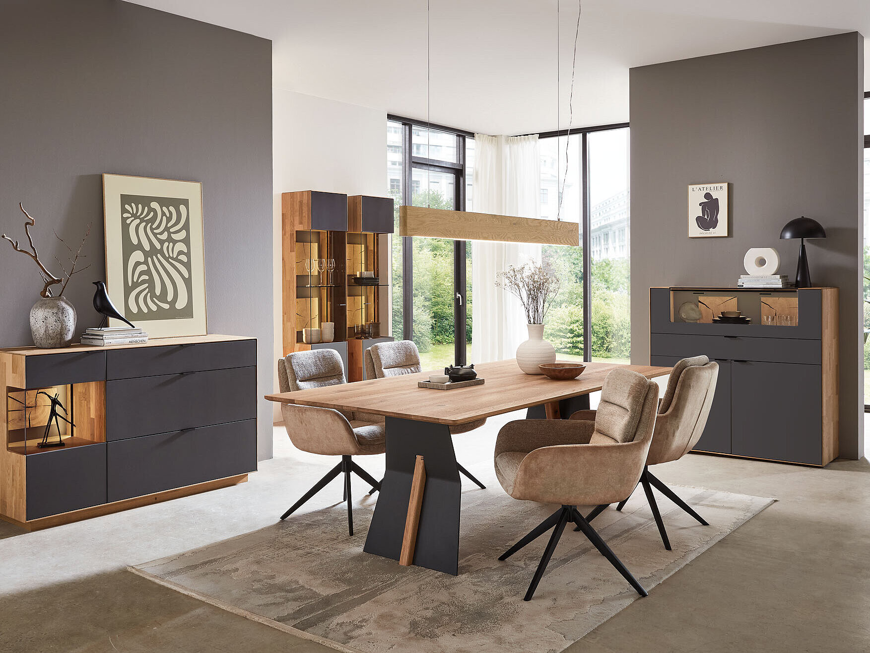 Sie suchen nach einer neuen Esszimmereinrichtung in minimalistischer Eleganz und möchten dennoch nicht auf die Qualität von bewährten Tischen aus Massivholz nicht verzichten zu müssen. Entdecken Sie das moderne Esszimmerprogramm WM 2410!