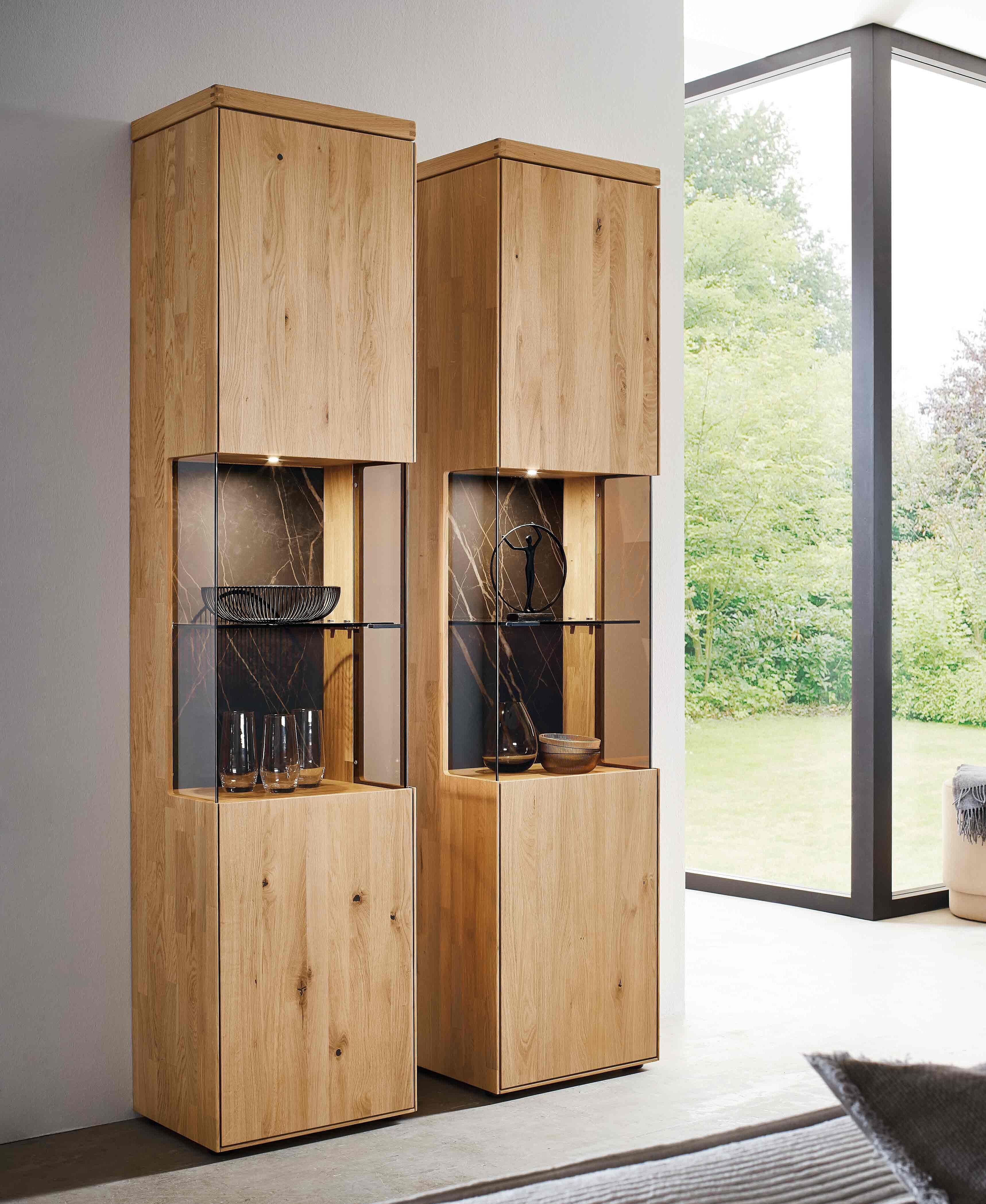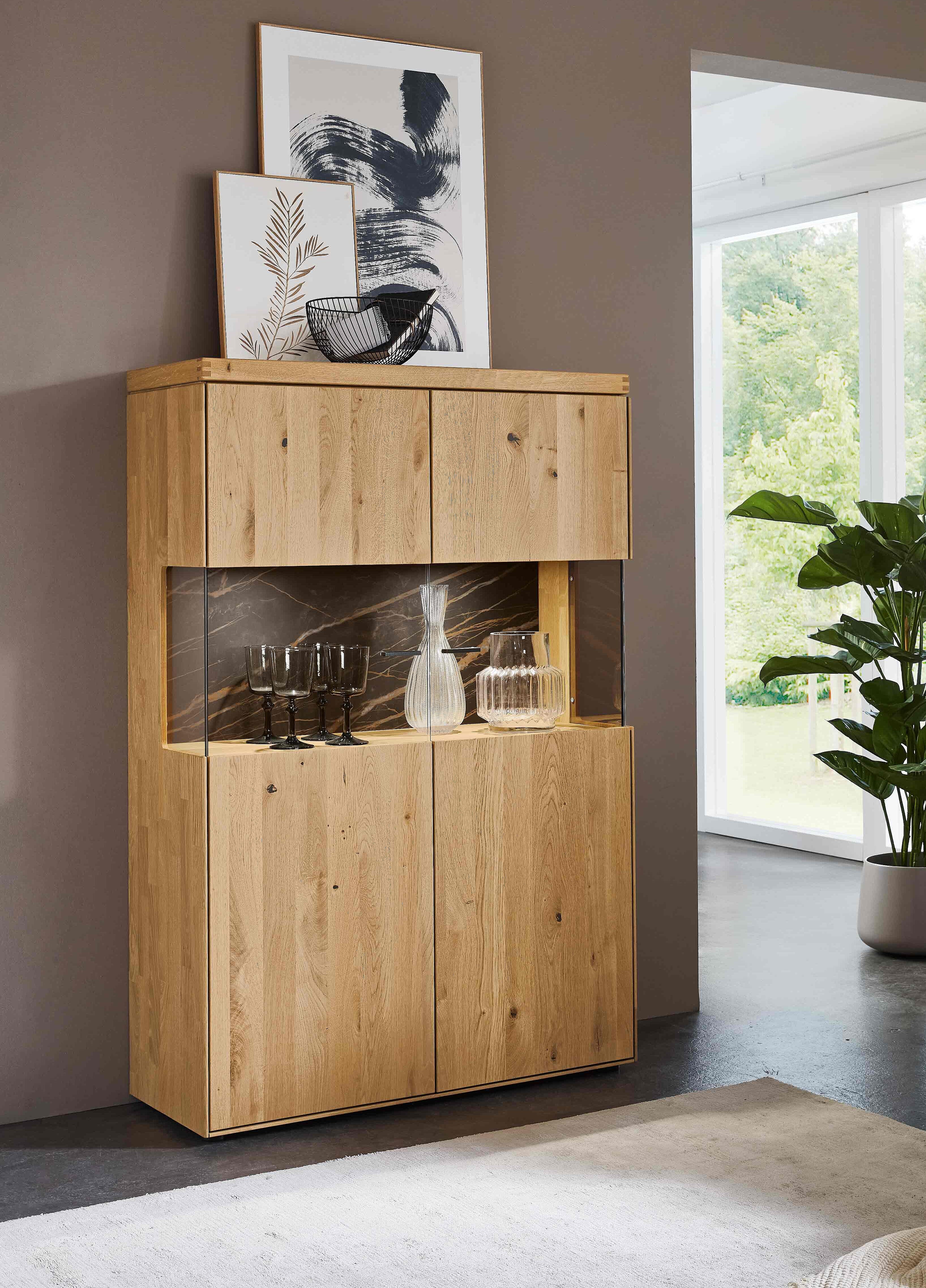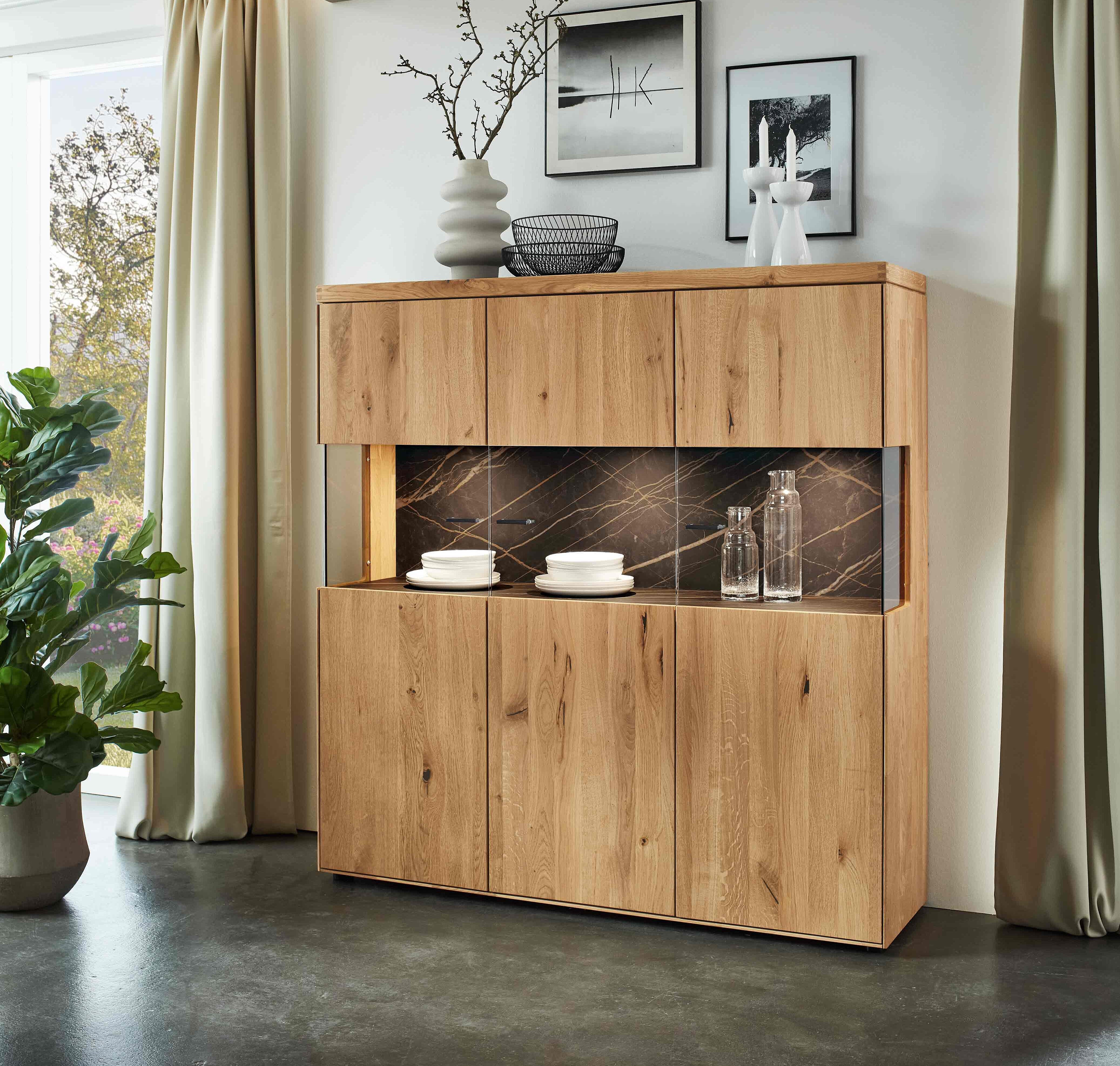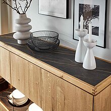 Entdecken Sie unser Massivholzprogramm WM 2520 – eine faszinierende Verbindung aus zwei besonderen Naturmaterialien: Zeitlose, warme Wildeiche mit eleganter, moderner Keramik. Eine klare Linienführung und die hochwertige, handwerkliche Verarbeitung machen diese Möbel zu unaufdringlichen, aber dennoch ausdrucksstarken Schmuckstücken, die sowohl in modernen als auch in klassischen Wohnräumen ihr Zuhause finden können. Die eindrucksvolle Keramik fügt sich mit ihren farblich abgestimmten Adern stilvoll in den zurückhaltend designten Korpus ein und verleiht dem Modell eine frische Anmutung. Feine, optische Verzinkungen an den Abdeckblättern runden das Möbeldesign ab.