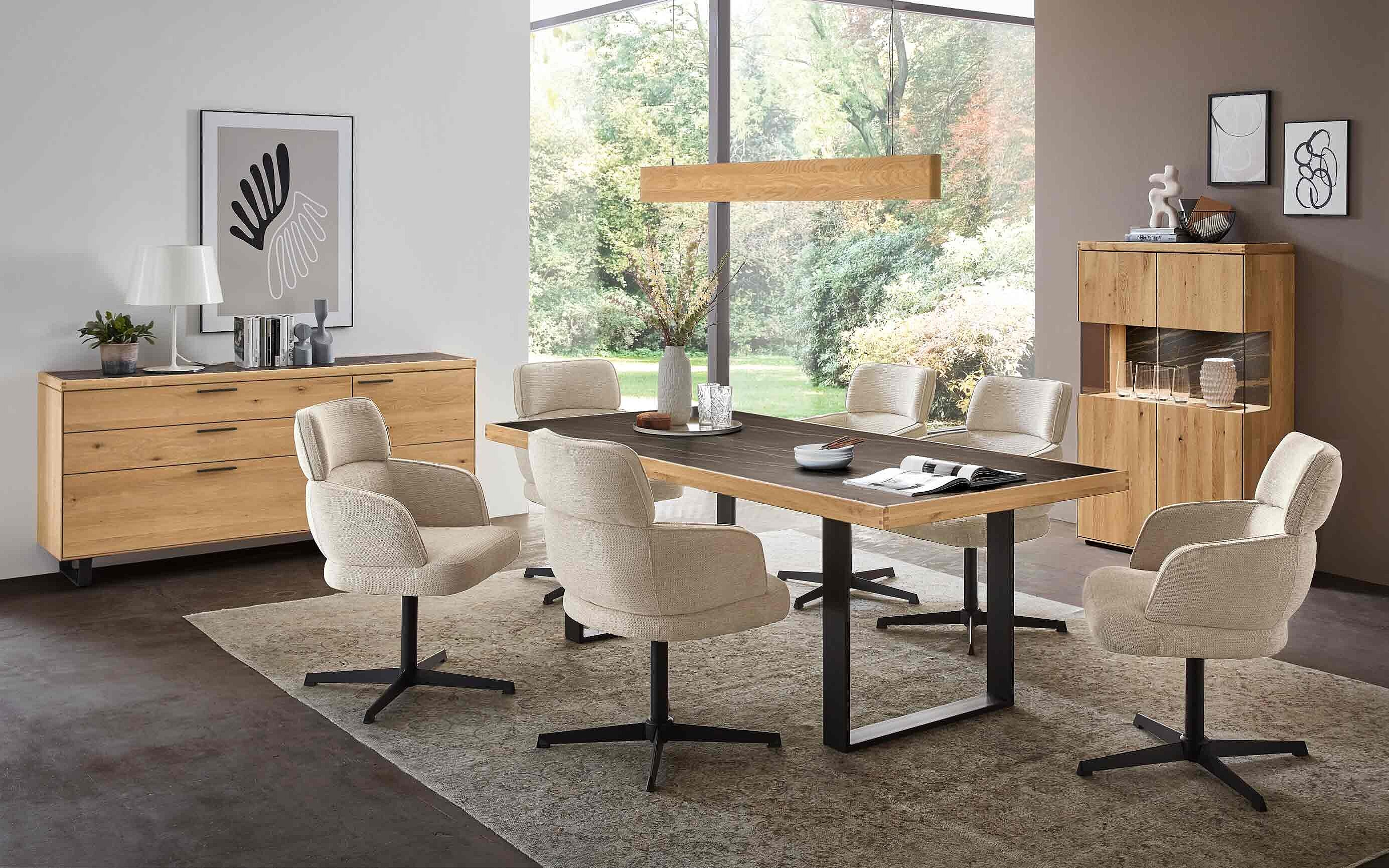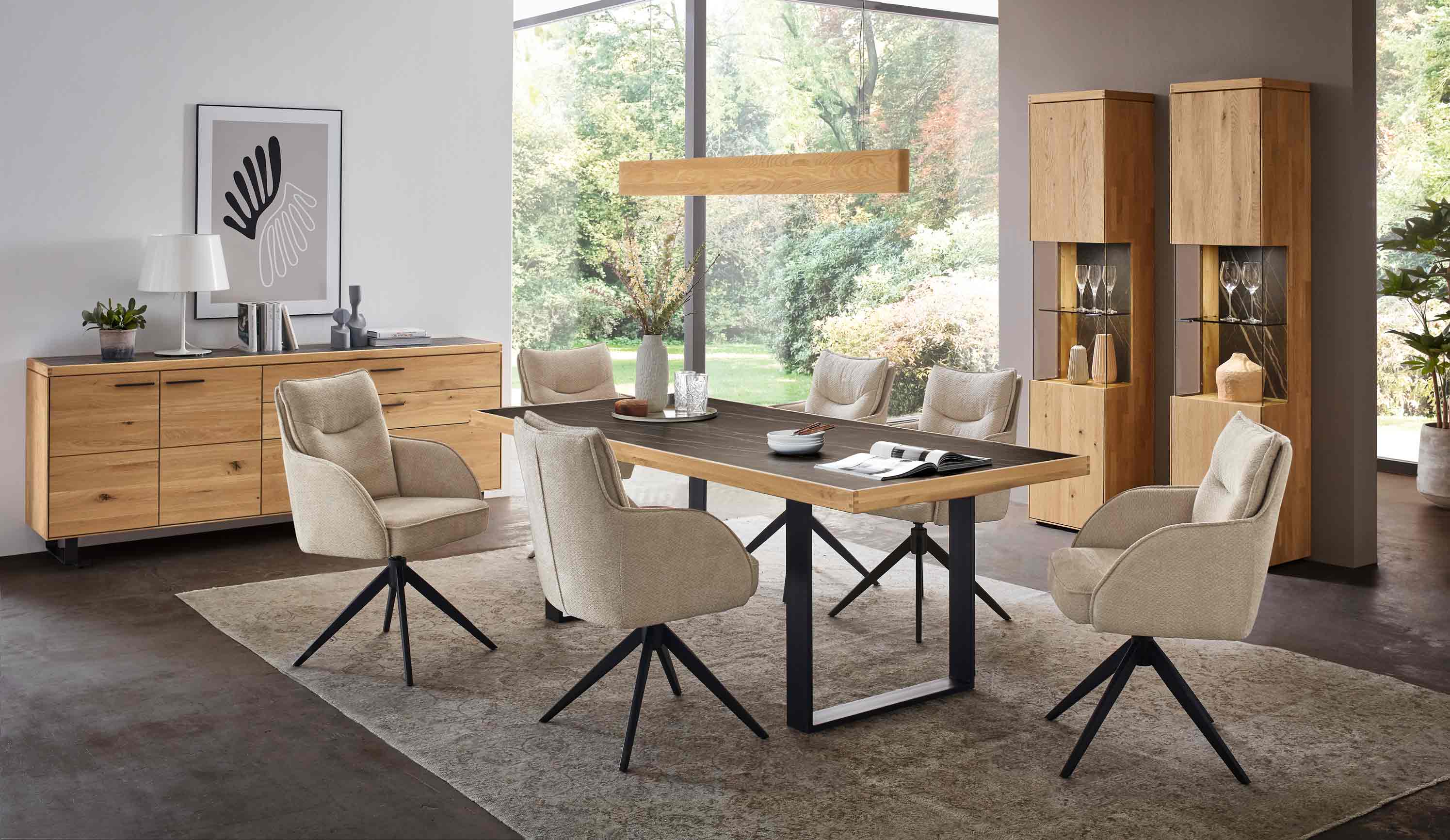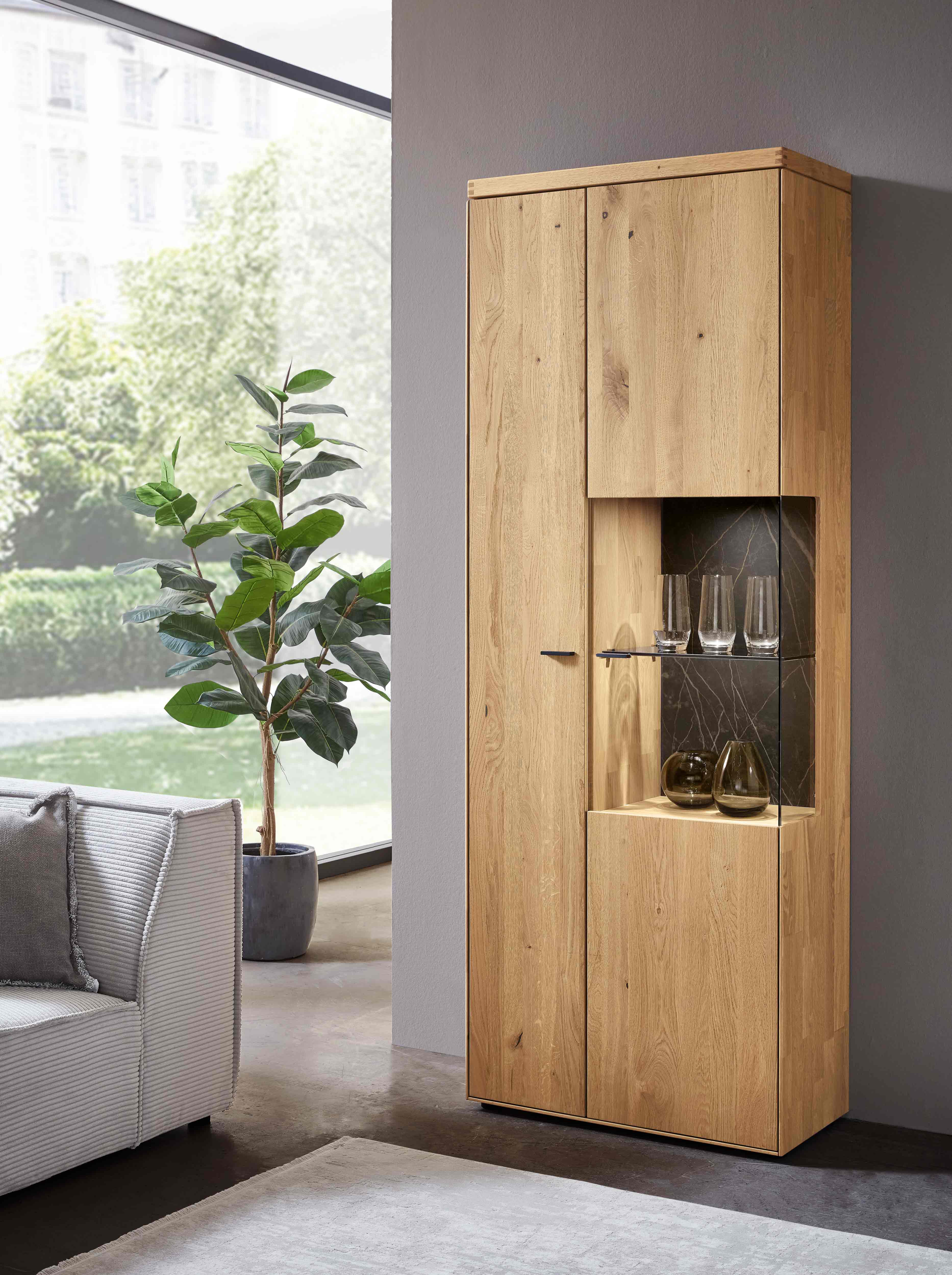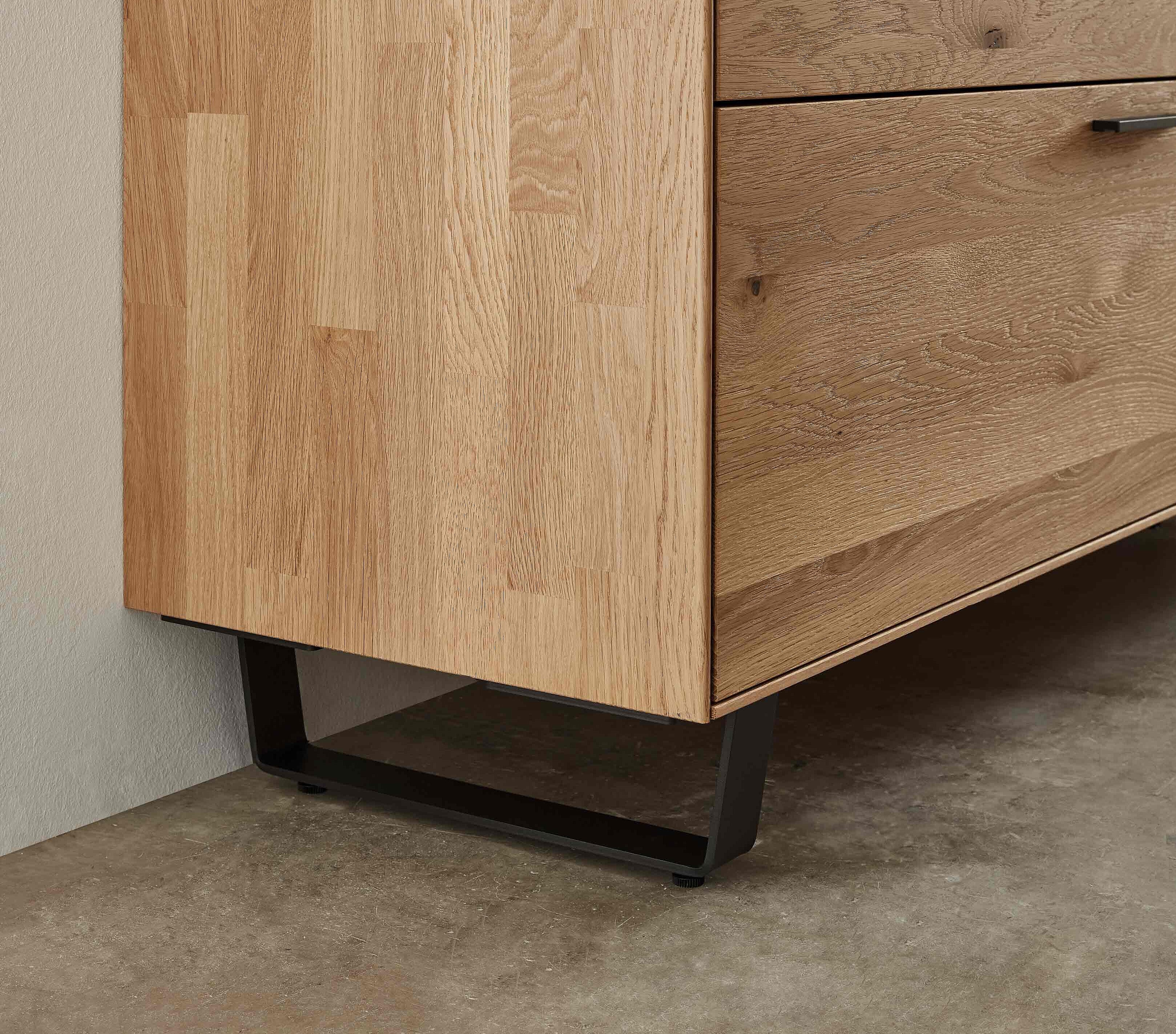 Entdecken Sie unser Massivholzprogramm WM 2520 – eine faszinierende Verbindung aus zwei besonderen Naturmaterialien: Zeitlose, warme Wildeiche mit eleganter, moderner Keramik. Eine klare Linienführung und die hochwertige, handwerkliche Verarbeitung machen diese Möbel zu unaufdringlichen, aber dennoch ausdrucksstarken Schmuckstücken, die sowohl in modernen als auch in klassischen Wohnräumen ihr Zuhause finden können. Die eindrucksvolle Keramik fügt sich mit ihren farblich abgestimmten Adern stilvoll in den zurückhaltend designten Korpus ein und verleiht dem Modell eine frische Anmutung. Feine, optische Verzinkungen an den Abdeckblättern runden das Möbeldesign ab.