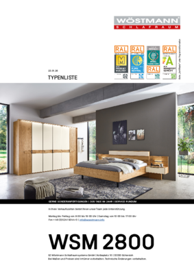 WSM 2800 Kleiderschrank Auszug aus der Typenliste